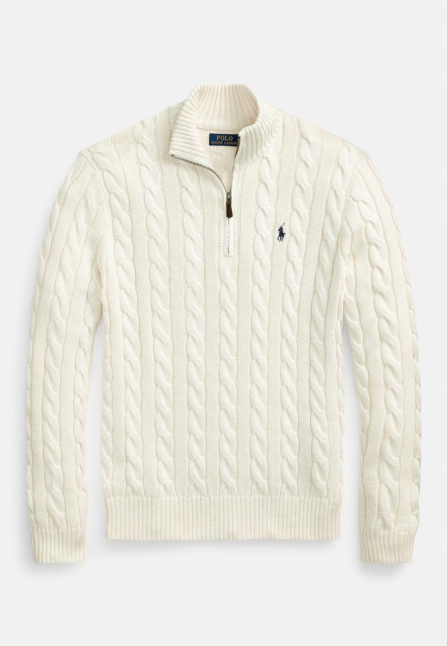 Polo Ralph Lauren CABLE-KNIT COTTON QUARTER-ZIP SWEATER – Jumper – fawn grey heather